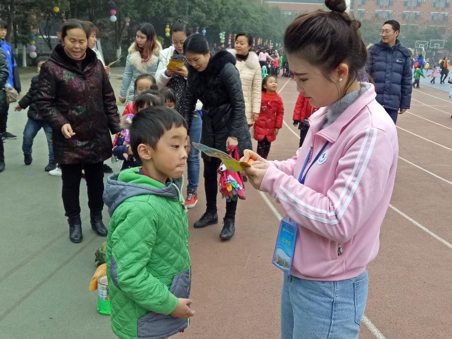 孩子们每参加一个游戏项目,老师就会在通关卡上盖一个印章,并在游戏结束后得到一份小小的新年礼物。