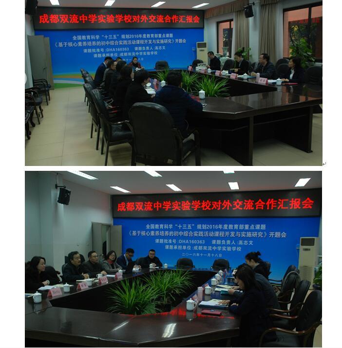 2016年12月1日下午,四川省教育厅对外合作交流处贺羽副处长,成都市教育局对外交流合作处闫益友处长,双流区教育局王金萍副局长和双流局教育局外宣科凌蓉科长一行莅临成都星空在线登录官网,出席了本次对外交流合作汇报会暨我校中美高中课程建设调研工作。