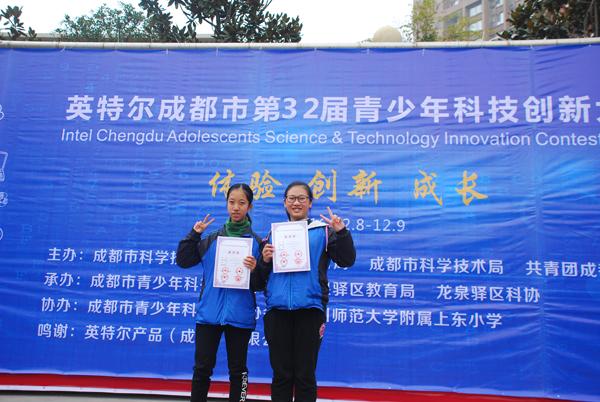 2016年12月7—9日,第32届成都市青少年科技创新大赛在四川师范大学附属上东小学召开。我校学生在这届大赛中表现突出,程序项目和科学论文和发明创造共八项作品进入最后答辩程序。经过专家评委会的考评,我校牟顺成老师指导的2017届15班学生谢依庭、侯佳仪2人共同完成的科学论文《福寿螺及福寿螺卵的消灭实验》获得本届大赛的最高奖项——英才奖。