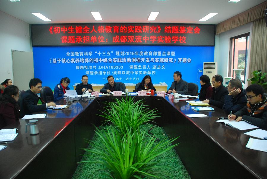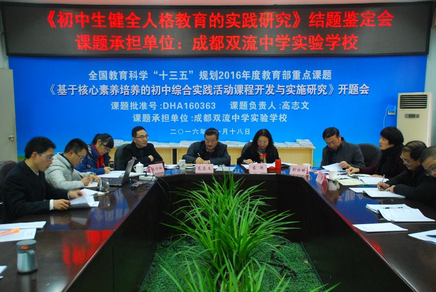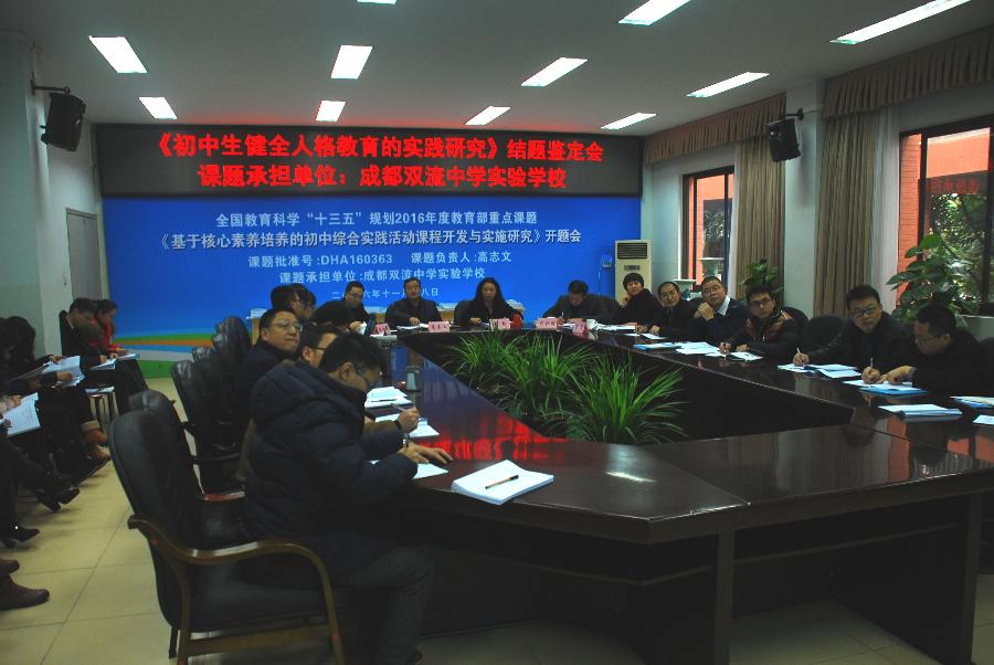 2016年12月15日上午,由成都星空在线登录官网独立承担的成都市双流区教育科研课题《初中生健全人格教育的实践研究》现场结题鉴定会在学校第三会议室隆重举行。四川师范大学教育与心理学院戴艳教授,四川省教科所科研管理室高级教师、四川省教育学会副秘书长刘怀明老师和成都市双流区研培中心理论室易恩主任担任课题结题鉴定专家。会议由成都星空在线登录官网常务副校长张润林主持,学校课题组主研人员代表36人参会。