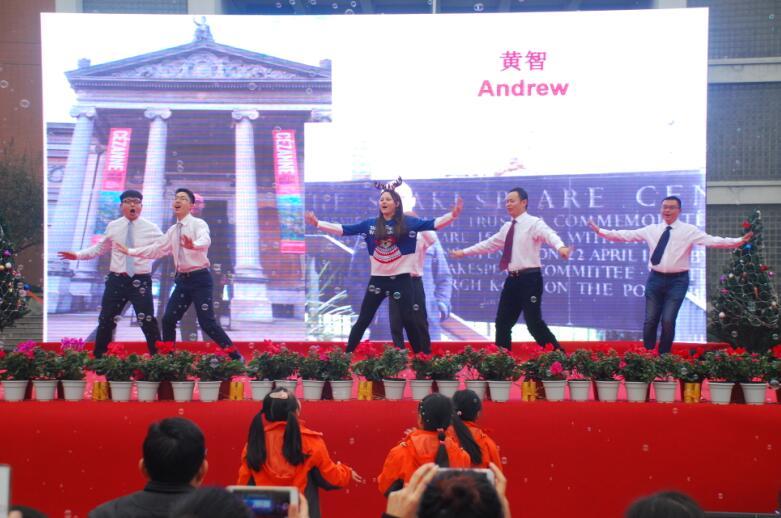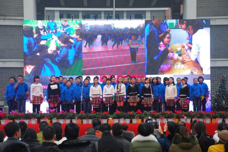 校舞蹈队的同学们用活力四射的开场舞点燃了全场的气氛。随后,丰富多彩的各类节目令人目不暇接。校合唱团的《踏雪寻梅》及《四季的问候》,由高中低三个不同声部的完美演绎将大家带入了音乐所表现的意境中;八年级文创班的《论语朗诵》,在悠悠筝声中,将古时先贤的警世恒言娓娓道来;双中实验附属小学的一年级同学们带来的英语音乐剧Sound of Music(《音乐之声》)更是一道亮丽的风景,稚嫩的童声,地道的英语,大胆的台风,完美的表演,让初中同学们,老师们和家长们赞不绝口。此外,还有英语短剧《狐假虎威》,《三打白骨精》,英语合唱Shalala,相声《如此中学生》,历史话剧《甘罗十二为使臣》,现场古筝表演和书画,四川打击乐团双中实验分团带来的打击乐《快乐地跳吧》等等精彩的节目。最后,七年级全体英语老师和美籍外教Jessie,澳大利亚籍外教Ian一起登上舞台,为大家带来了歌舞秀,在学生们的尖叫声中将汇演的气氛推到了顶点。