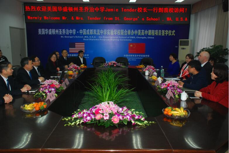 2017年1月6日,美国华盛顿州圣乔治学校校长Jamie Tender 及夫人到访我校,就与我校合作举办中美高中课程班及联合办学相关事宜进行磋商。