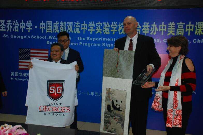 首先,我校校长高志文向美方校长一行致欢迎词并介绍了我校的教学环境、课程建设、育人目标等。介绍彰显了学校先进的办学理念和极富前瞻性的办学特色。美方校长一行对此予以高度评价。之后,Jamie Tender代表美方学校致答谢词并介绍了美国圣乔治学校的相关情况和办学特色。在听取双方的介绍后,双方就教学理念和育人目标等方面达成高度共识,会议当场签署了合作办学协议并互赠礼物。会后,在高校长的邀请和陪同下美方校长一行参观了校园。