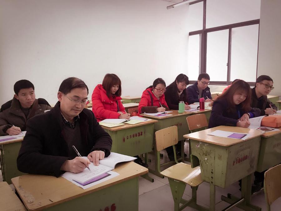 第三周周二,我校2017级英语备课组全体成员齐聚一堂在学校的图书馆召开了“初三英语复习备考动员与工作安排大会”。年级分管领导文传福主任,英语学科教研组长李征受邀参加了会议。在会上谭虹涛组长首先对参加2017级毕业复习备考的老师们做了动员工作。谭组长在会上深情回顾了我们老师们在过去两年多时间里艰辛的付出和取得的成绩。他回顾到:2017级的老师们是一个特别能战斗的团队;整个年级学生人数多,班额大,学习困难学生多,学生学习习惯差,英语老师少,任务重;在如此种种压力下,我们的团队没有屈服,迎难而上。在我们的两年多艰苦努力下,我们取得了一次又一次辉煌成绩。全区调研考试第一,全区赛课第一,全区竞赛第一,全区论文第一,刚举行的ASDAN国际比赛获得银奖。在分享成功快乐的同时,其间的汗水和泪水埋藏在我们每一个人的心间。谭组长声情并茂的发言引起老师们的共鸣,大家以热烈的掌声对自己的付出予以肯定。随后谭组长号召我们:为了取得中考的最后胜利,我们还得咬紧牙关,团结起来,进行最后一搏。
