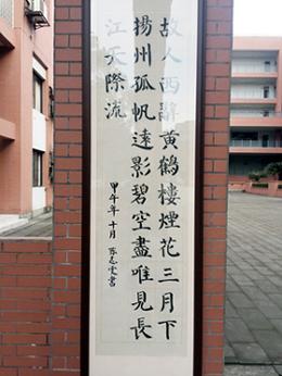 简单交流几句后,赵老师带我走进了校园。在走进太阳门前,有个偌大的阶梯,阶梯前有两列学校的介绍。在赵老师的介绍下才知道这是双中实验的课改成果,虽然赵老师的介绍很大气、很详细,但是我这个木鱼脑袋却不能说出个一二来。只是明白了一点,学校每天下午都会开展综合活动实践课,并非活动而是写在课表上的课程。