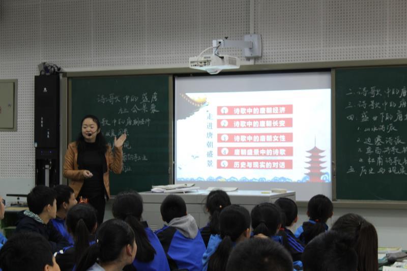 本课张老师经过精心准备,制作了精美的ppt课件,为学生构建了完整的知识体系。富于文学色彩的教学语言,充满亲和力,将学生带入诗歌鉴赏与历史学习的情境中,取得了良好的教学效果。(历史组 范勇波)