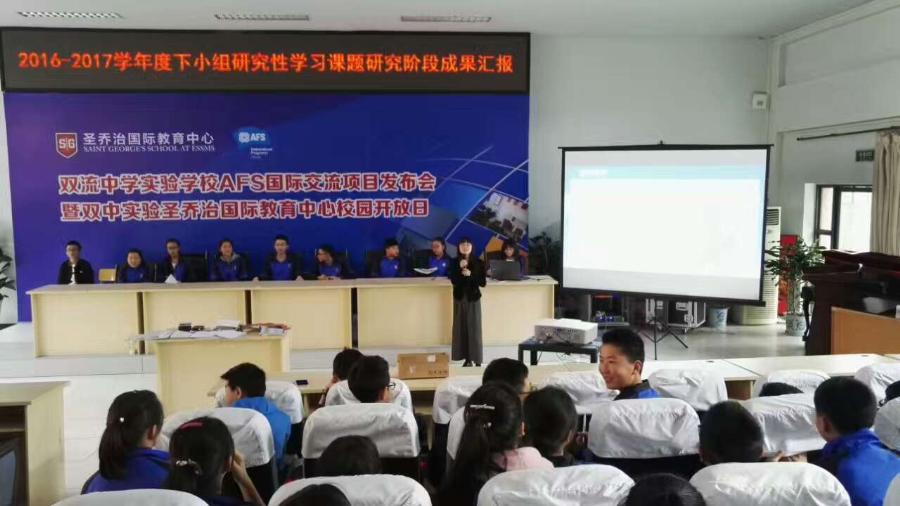 2017年4月17日(星期一)下午第九节课,校园气象站在学术报告厅开展了科技节汇报活动,汇报老师是向敏老师和姚萌老师。小组研究性学习课题组代表教师、跨学科大型课题和分学科小型课题组代表教师以及全校地理教师到场。