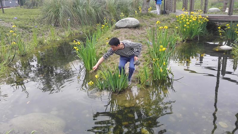 2017年4月20日,中午1点整,白河课题组四位成员在王伟和罗远均两位指导老师带领下驱车来到了凤翔湖公园,寻找福寿螺 、水草、石头、淤泥,为我们回学校模拟布置福寿螺生态环境做好准备。